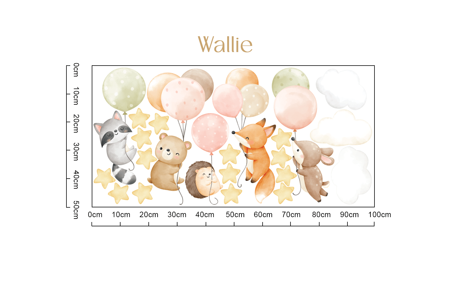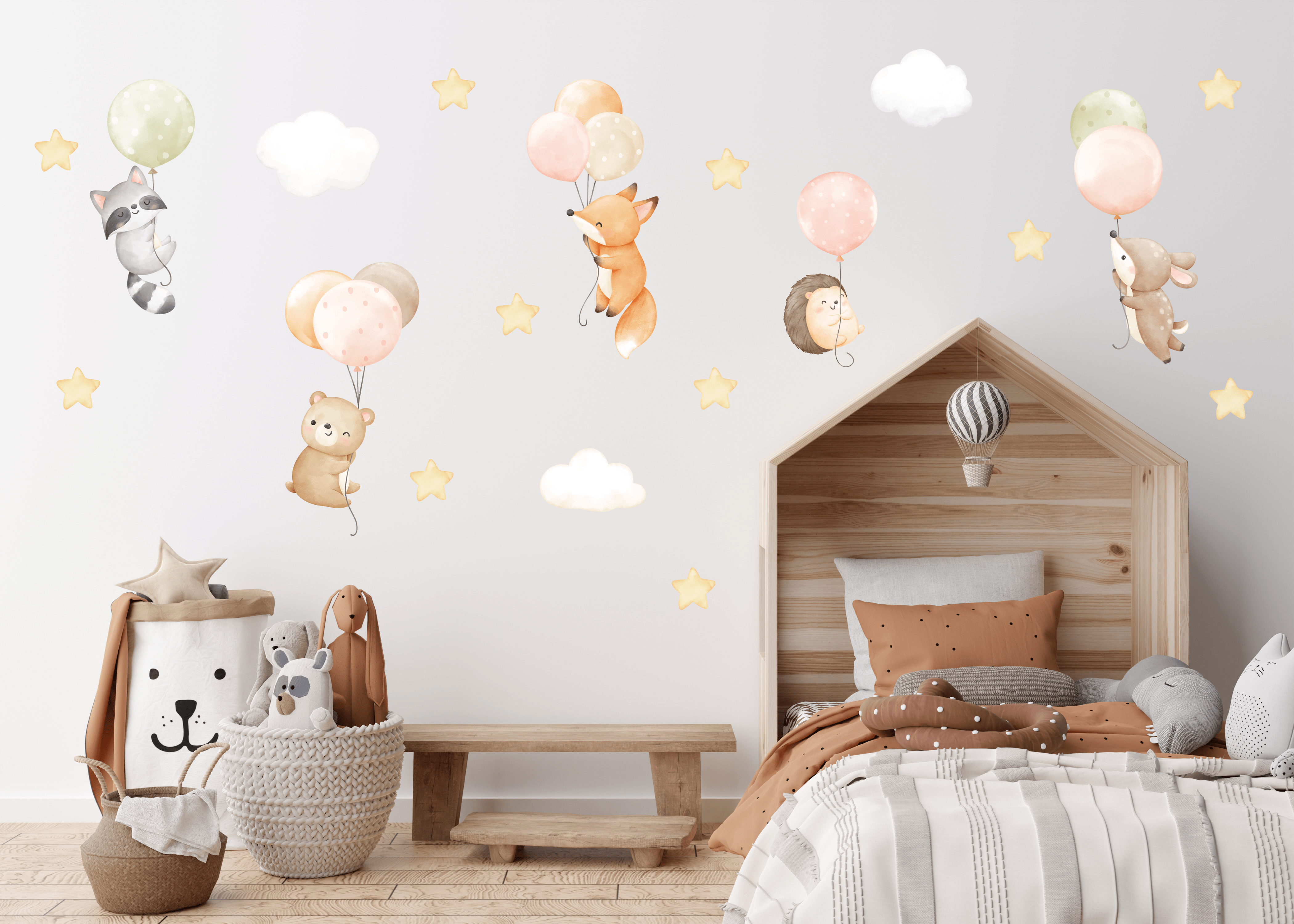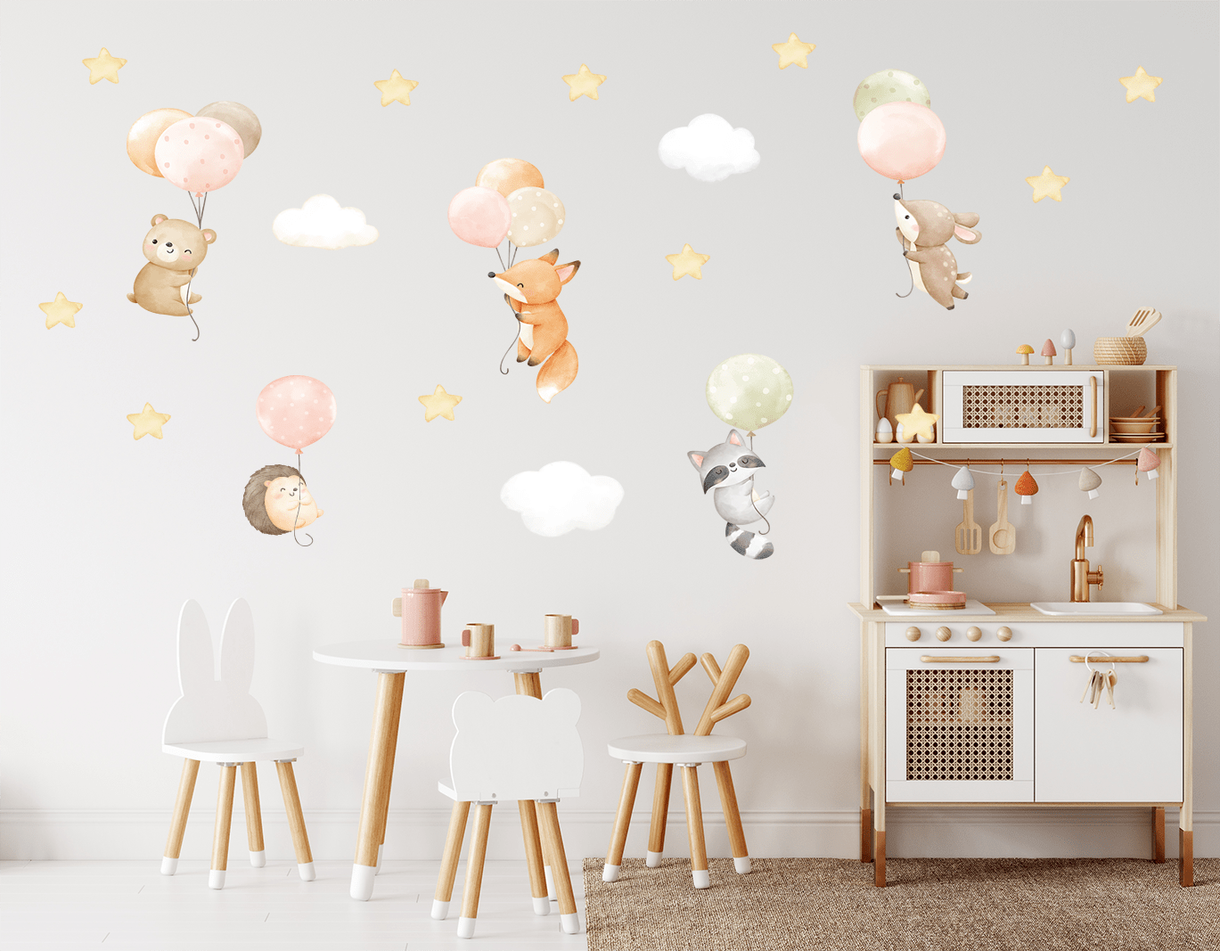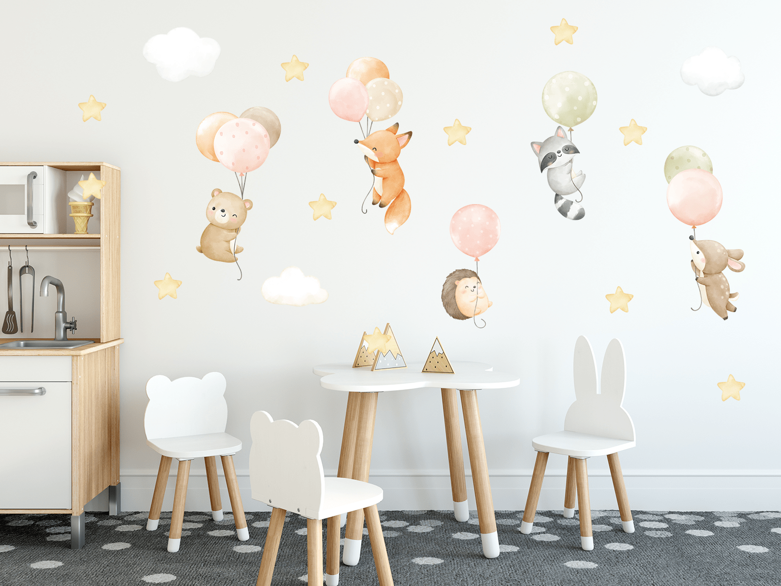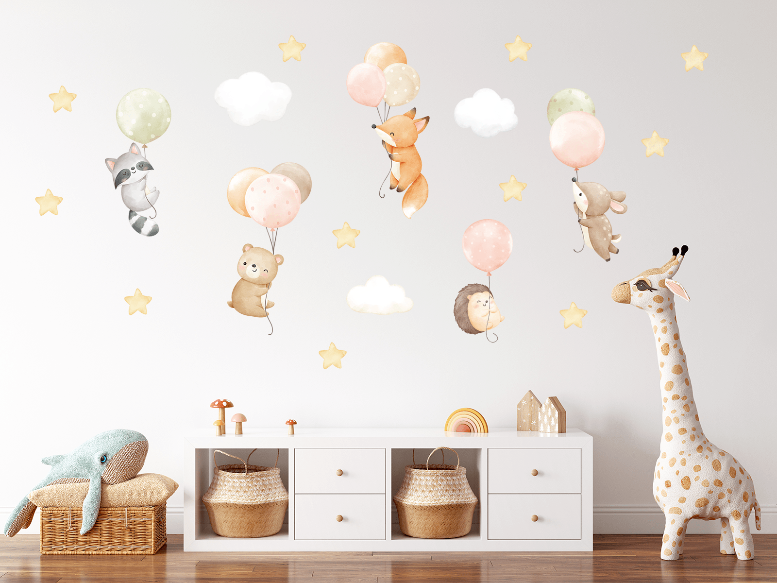 Wprowadź do dziecięcego pokoju nutę magii i beztroski dzięki naszym wyjątkowym naklejkom ściennym „Zwierzaki z balonikami”!