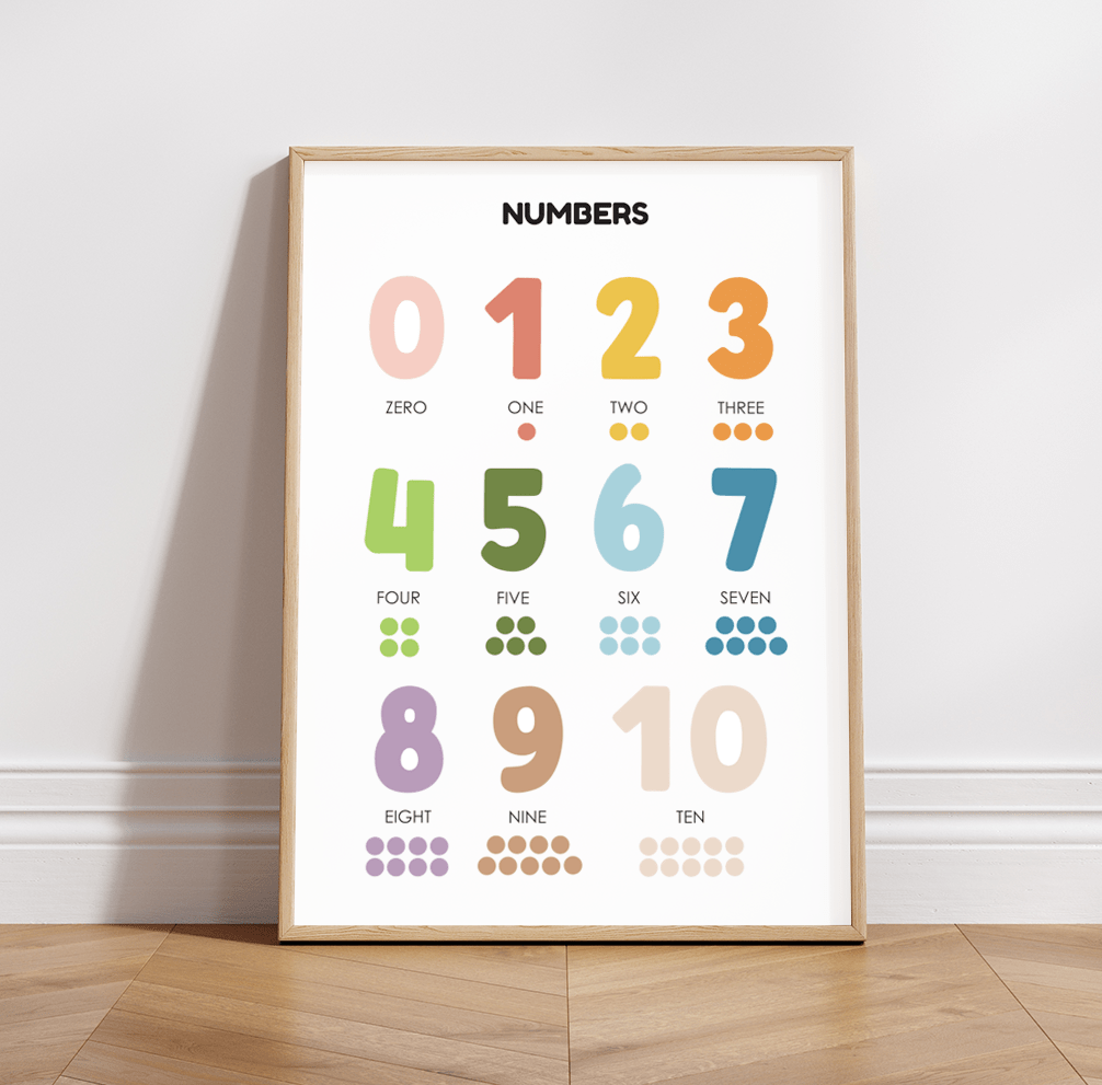 Plakat edukacyjny z liczbami po angielsku to doskonała pomoc dydaktyczna i jednocześnie piękna dekoracja ścienna. Wprowadza dziecko w świat języka angielskiego, rozwija umiejętności matematyczne i sprawia, że nauka staje się zabawą. To must-have w pokoju każdego małego odkrywcy!